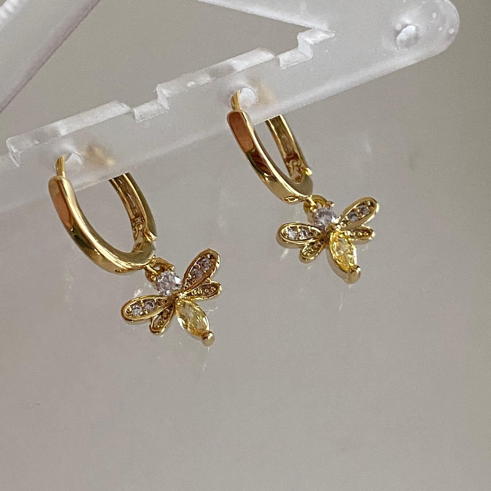 Bu zarif 14K altın kaplama özel tasarım bebek küpesi, minik halka formu ve ucundaki taşlı arı figürüyle küçük kulaklarda son derece şirin ve ışıltılı bir görünüm sunar. Kanatlarında yer alan parlak taşlar ve gövdesindeki damla form taş, küpe hareket ettikçe ışığı nazikçe yansıtarak bebeğinizin stiline sevimli bir parıltı katar.