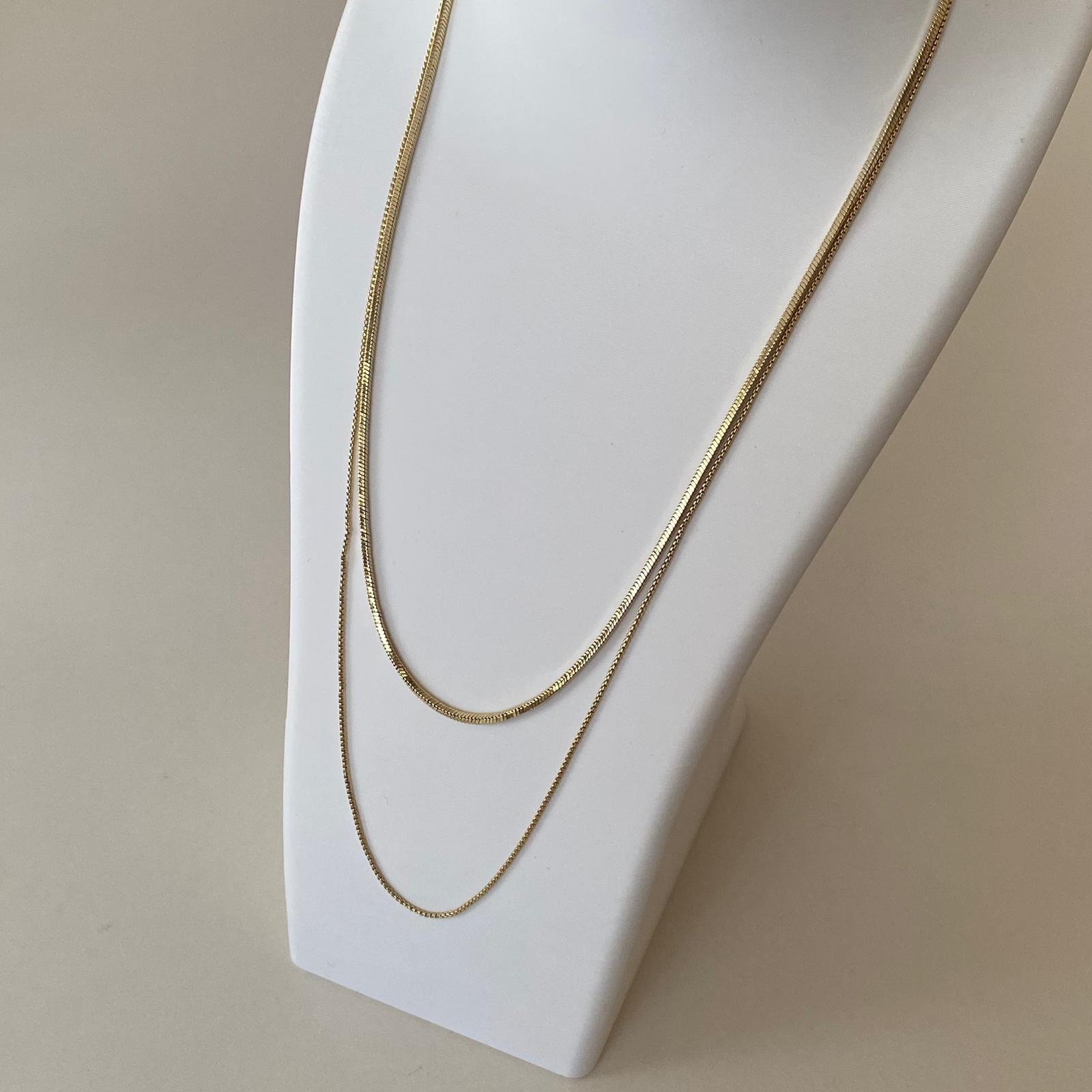 Bu zarif 14K altın kaplama özel tasarım kadın kolye, iki farklı uzunlukta tasarlanmış ince zincirleriyle tek parçada katmanlı bir görünüm sunar. Yumuşak yılan formundaki parlak zincirler, boynunuzda hem sade hem de son derece şık bir duruş sergiler; gömlek, basic tişört ve elbiselerle rahatlıkla kombinlenir.