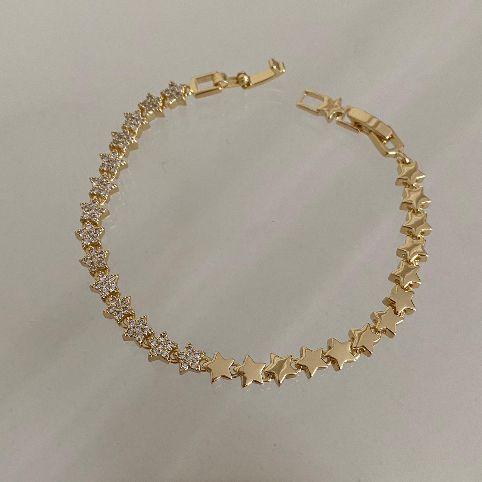 Bu zarif 14K altın kaplama özel tasarım kadın bileklik, modern ve şık oval bağlantı formu ile dikkat çeker. Ön yüzündeki ışıltılı taş detayları, bilekliğe lüks bir dokunuş katarken, kaliteli kaplaması sayesinde kararma yapmaz, alerji oluşturmaz ve doğru kullanımda yıllarca ilk günkü parlaklığını korur.