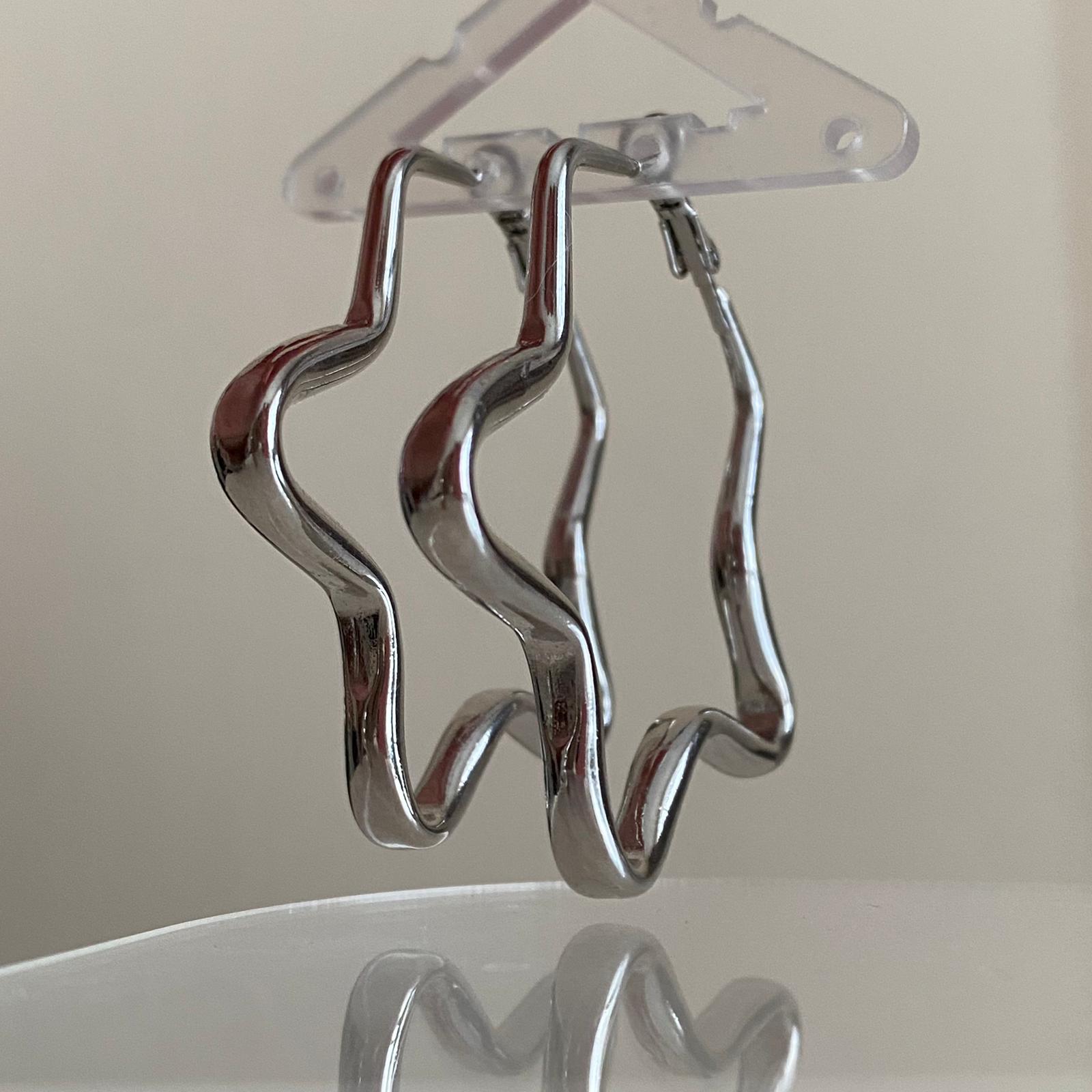 Bu dikkat çekici 14K altın kaplama özel tasarım kadın küpe, yıldız formunda dalgalı çizgili halka yapısıyla modern ve iddialı bir görünüm sunar. Parlak metalik yüzeyi ışığı güçlü bir şekilde yansıtırken, hafif yapısı gün boyu konforlu kullanım sağlar. Minimal çizgilere sahip bu yıldız silüeti, hem spor hem şık kombinlere kolayca uyum sağlar.